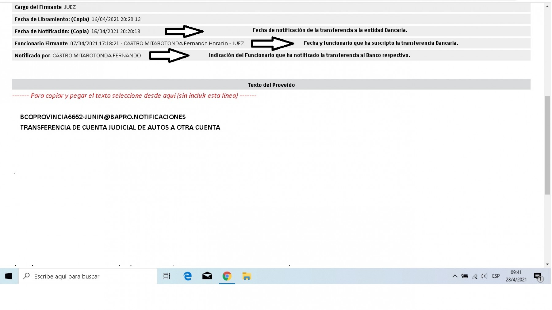 El documento que instrumente el acto procesal de comunicación contemplado en el Anexo III del Acuerdo 4013 (texto según Ac. 4039), contendrá una breve explicación, en lenguaje claro, acerca del contenido, alcances y consecuencias del acto anoticiado.